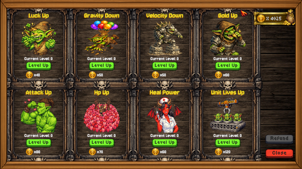 Reduce the castle’s HP to 0 to win the level