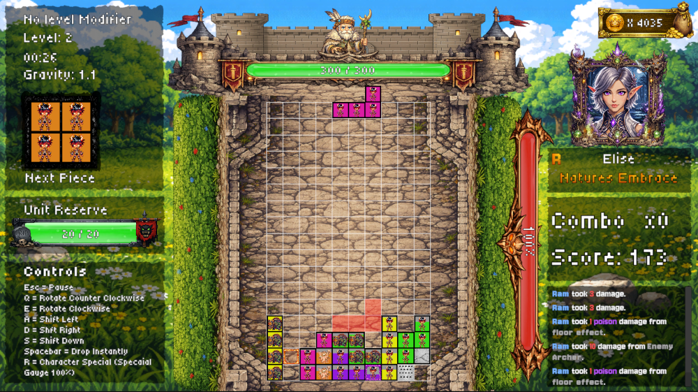 Classic Tetris-style mechanics with meaningful combat